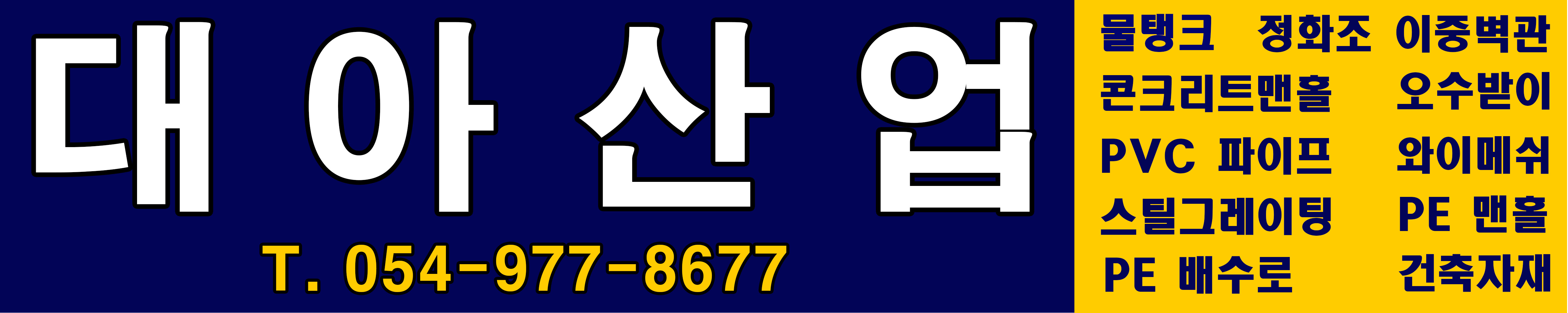 저희 대아산업은 정화조, 물탱크, pe이중벽관, PVC파이프, 콘크리트맨홀및 수로관, (오수,우수)주물. 스틸그레이팅, 와이어메쉬(용접철망)외에도 다양한 건축자재 판매업체 입니다. TEL: 054-977-8677